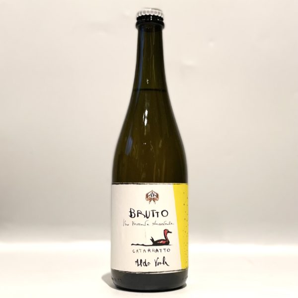 アルド初のメトド・アンセストラーレ。フリッツァンテ。ティンピ・ロッシと呼ばれる粘土質を含んだ石灰砂質土壌の畑のカタラットを使用。9月中に手摘みで収穫。ステンレスタンクで発酵&熟成。澱引き無し。ノンフィルター。このワインは微発泡で、スプマンテ・ブリュットに似ているため、アルドがそれをもじって、ブルット(醜い)と名づけました。