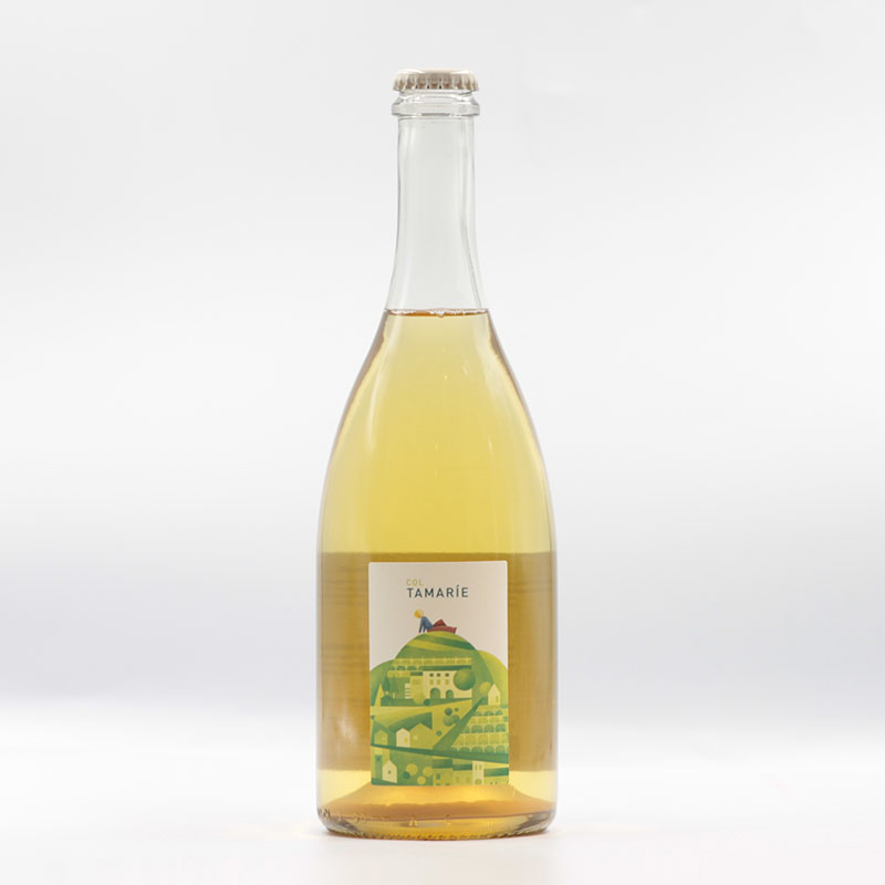 ヴァルドビアッデーネ近郊の町、ヴィットーリオ・ヴェネトの西側。自然の森に囲まれひっそりと暮らすアルベルトとマルタ夫婦。2000年よりブドウ造りを開始し、2003年初収穫。出来たブドウはそのまま知人のワイナリーへ販売していた。2007年より実験的に醸造を開始するが、すぐにリリースはせず、納得のいくワインができるまで6年もの年月をかけ完成させた。少量の初リリースとなった2013年ヴィンテージ、そして2ヴィンテージ目となった2014年は15.000本を生産。順調にカンティーナとしての歩みを始めている。畑では農薬や化学肥料は使用せず、9haある土地のうち、半分の4.5haをブドウ畑、残り半分は森のまま、自然環境を保つ事を最重要にしている。栽培する品種は、主要品種であるグレラとその他の補助品種。ブドウ品種によって区画を分けず、乱雑に品種を混ぜて栽培する事で、より自然な状態でブドウが育つという考え。丁寧に手作業で育てられたブドウは収穫も一房一房丁寧に行われ、ブドウが傷つかないよう、慎重にカセットに並べられ醸造へ。自然酵母にて発酵。全ての段階でフィルターや清澄作業は行わず、酸化防止剤すらも一切使用しない。一次醗酵が終了し、冷却保存しておいた果汁を添加。瓶内で発酵を再び行うメトードアンセストラーレ。グレラによる微発泡ワインのみで勝負するタマリエ。彼らの土地の自然をそのまま感じれる、素晴らしい味わい。