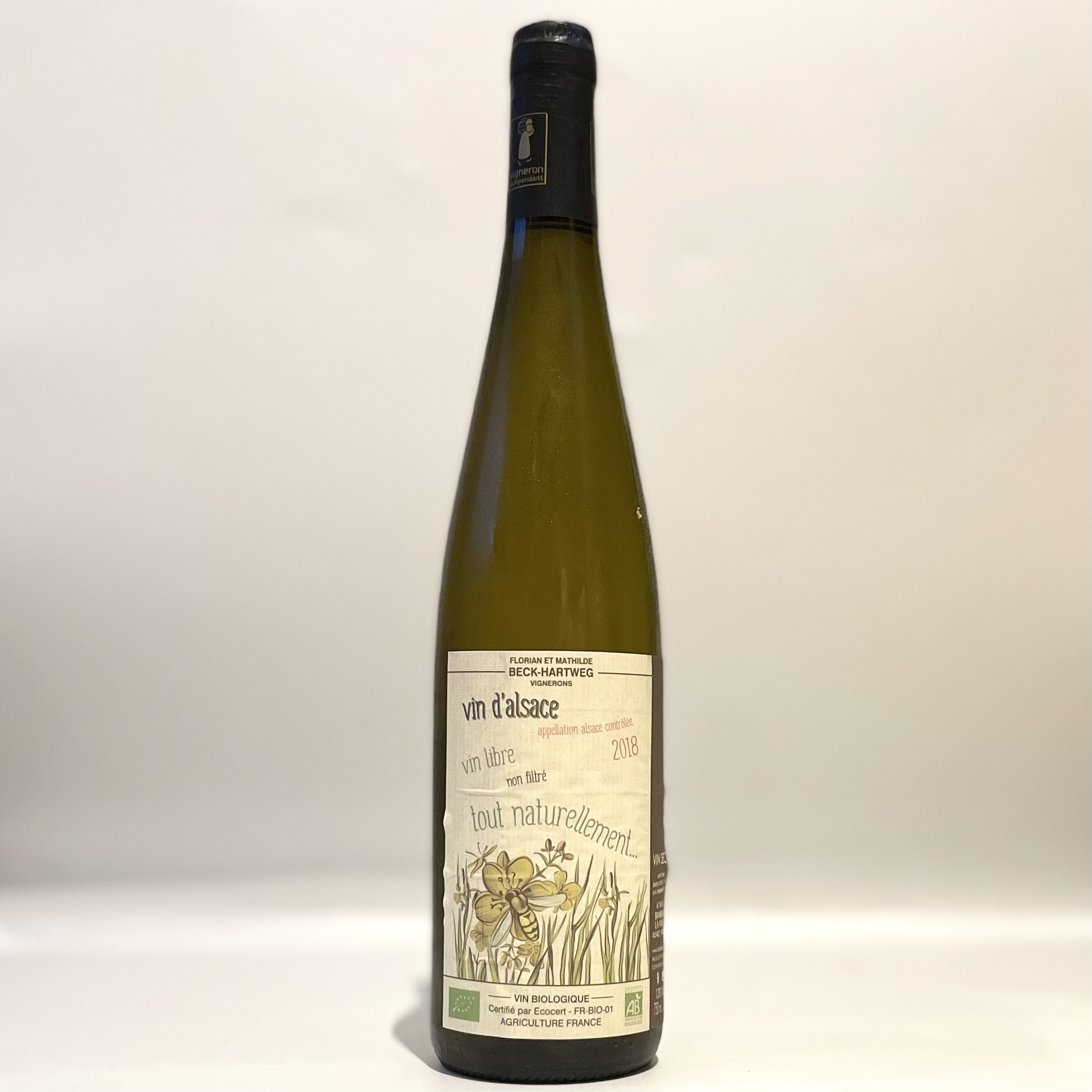 1992年よりビオに転換し始め、2008年に認証を取得。若き当主フロリアンさんは14代目。若き伴侶マチルダとともにいろいろな自然農法を勉強し、インドのヴァンダナ・シバを訪問したり、日本の自然農の農家に住み込みで研修したりと非常に熱心な自然主義者である。年間生産量は約25000本。肥料はほとんど与えず、植物をもどしてやる位。あまり土壌をいじらず、自然のままを生かしている。土壌はアルザスではそれほど多くない花崗岩土壌でミネラル感に富んだ味わい。